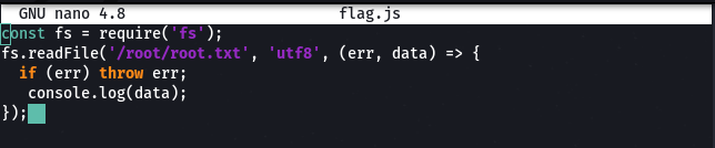 20. Letโs use the root Permission to display the root Flag. Create a File with nano and add the below code to display the Flag