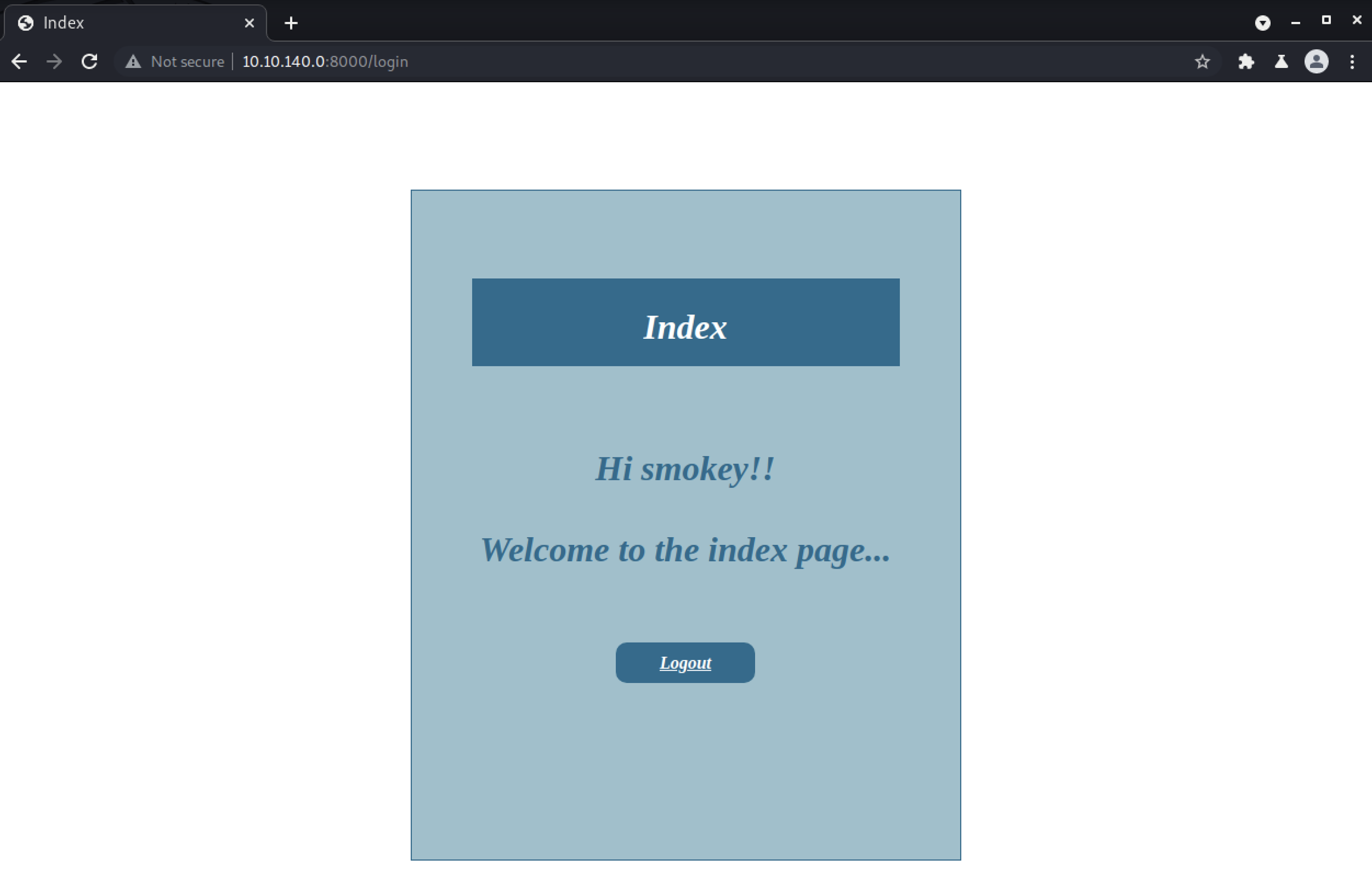 There isn’t much of anything to see on the page besides a welcome message for “smokey”: