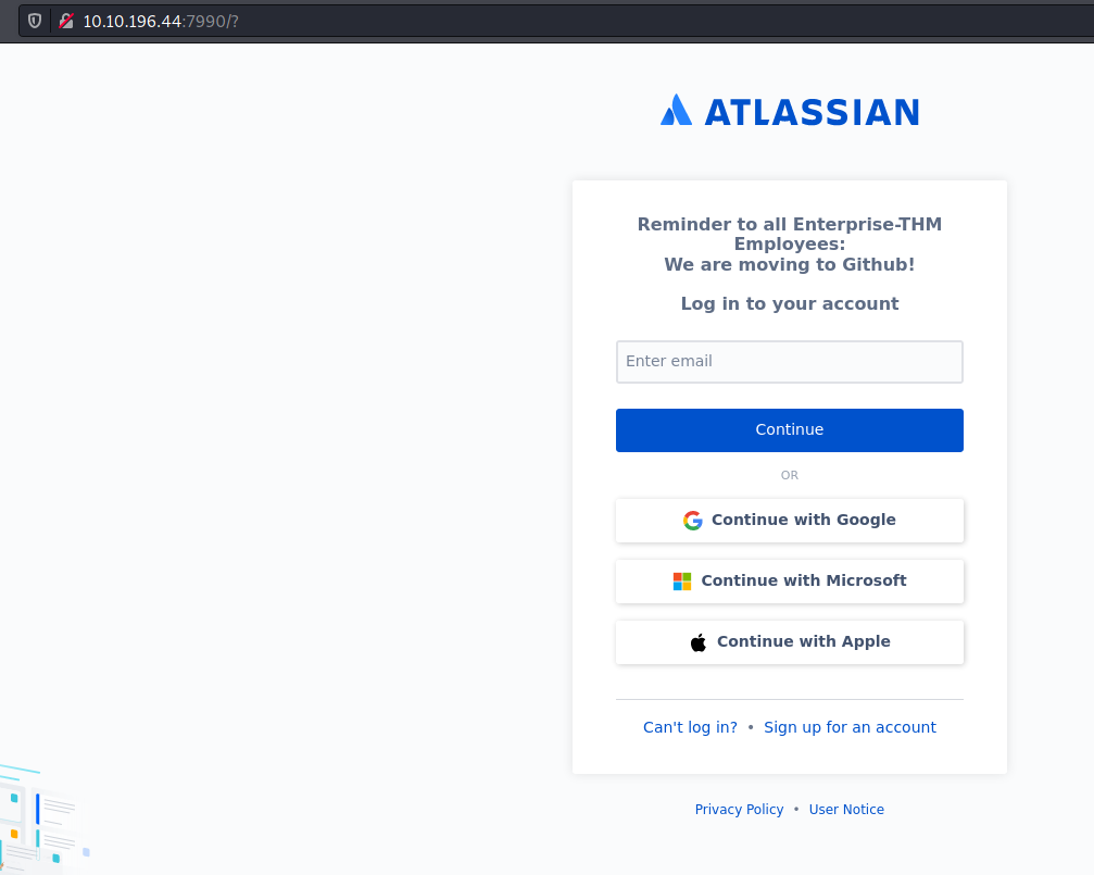 I turned my attention to the HTTP found on port 7990.