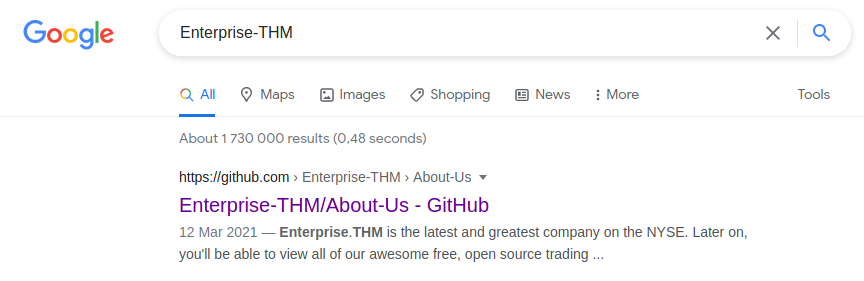 Hoping to avoid seeing any spoilers, I headed to Google and search for Enterprise THM.