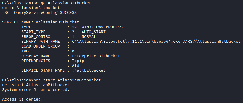 Although I have access to the files for the AtlassianBitbucket service, I cannot control the service itself.