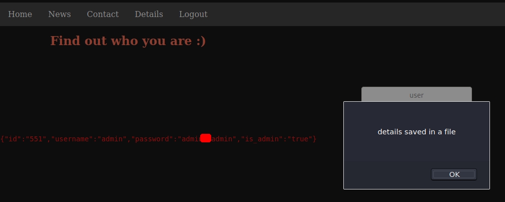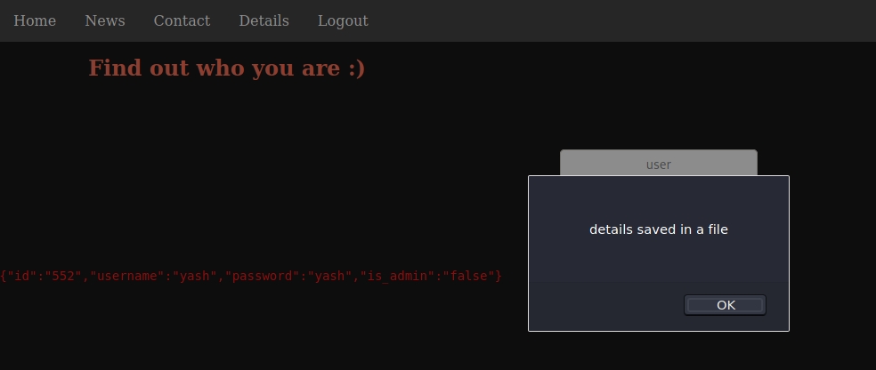 This told me there was two users on the server: βyashβ and βfilesβ. I tried them in the Details page.