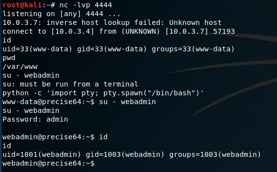One of my go-to commands for a long time after catching a dumb shell was to use Python to spawn a pty. The pty module letโs you spawn a psuedo-terminal that can fool commands like su into thinking they are being executed in a proper terminal. To upgrade a dumb shell, simply run the following command: