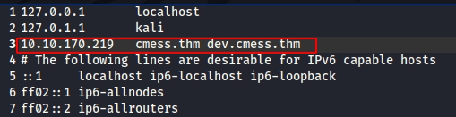 So we have found one sub domain, add it to /etc/hosts file as shown below and access it like: http://dev.cmess.thm