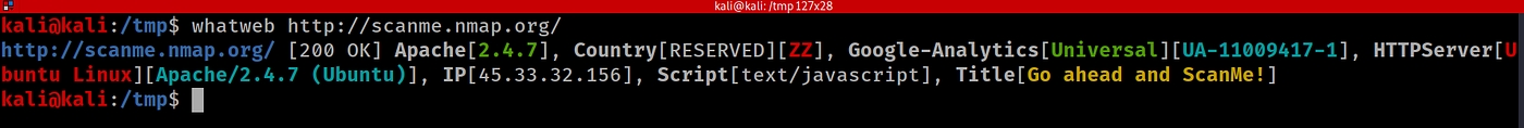 Sample Output for Whatweb: