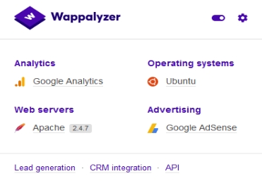 Sample output for the same website using the browser extension wappalyzer: