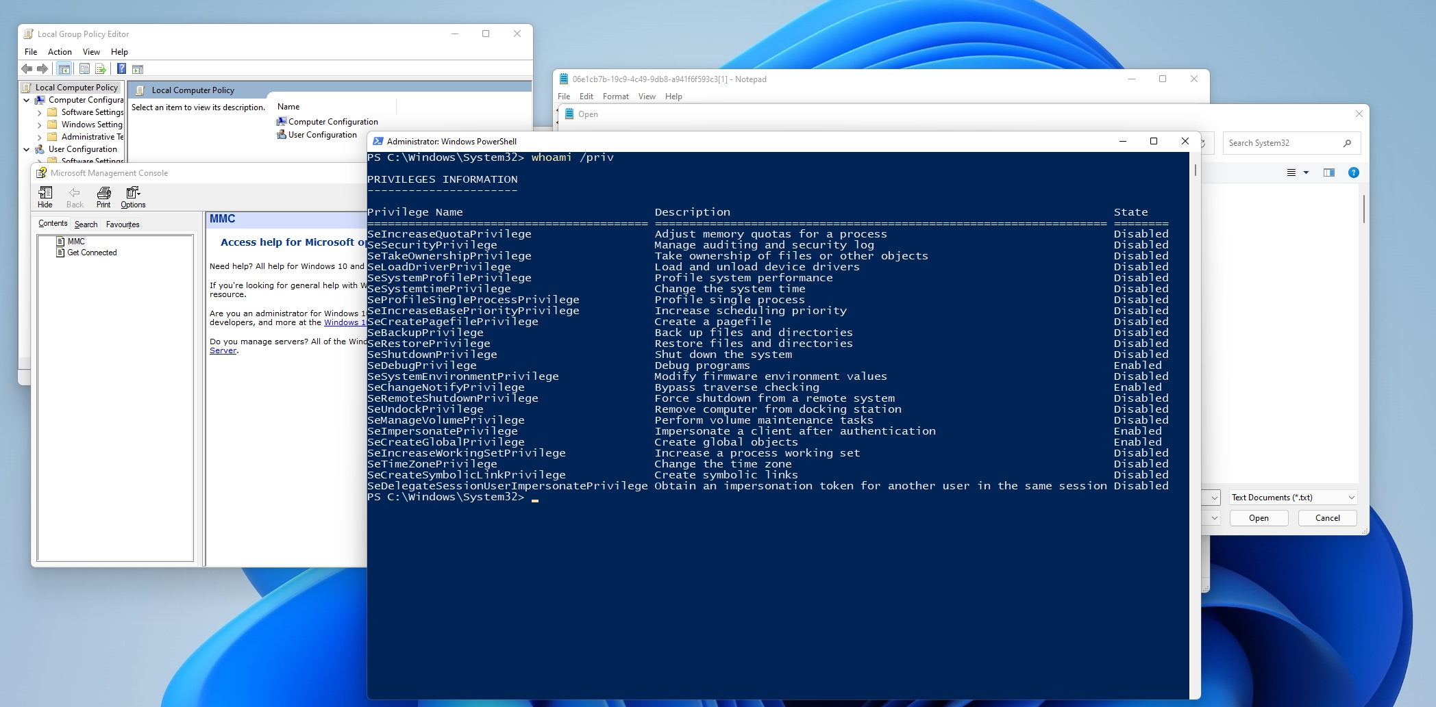 Ok these are a really simple UAC bypass from a userland GUI perspective. This is about increasing process integrity levels โ itโs not about performing LPE from low integrity to high/SYSTEM with no interaction. These clearly work in older version of Windows as well but since Windows 11 will be the current version in the near future I thought it was fun to re-visit these!